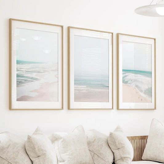 Minimalist Neutral Ocean Beach Wall Art Set of 3 Pieces
