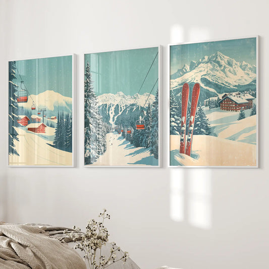 Vintage Ski Poster Set of 3. Snowboard, Skier & Ski Lift Wall Art