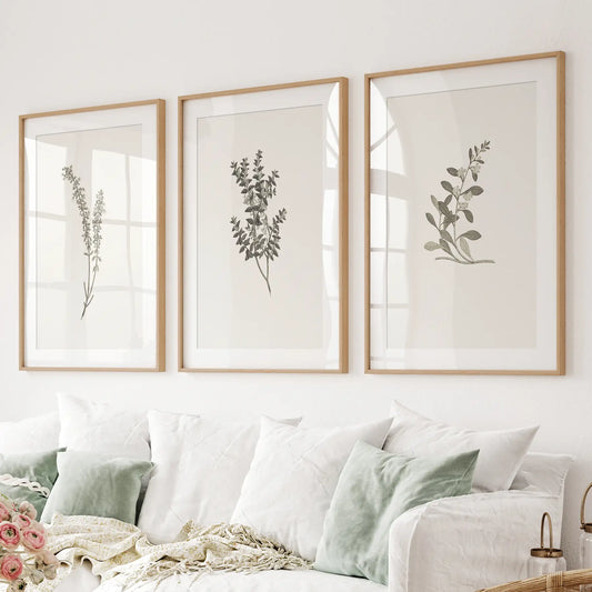 Vintage Neutral Botanical Decor. Set of 3 Prints
