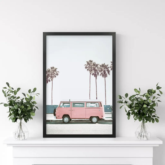Travel Pink Van Wall Decor. California Summer Theme