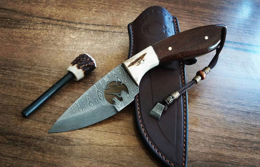 Wolf Paw Hunter’s VG10 Steel Knife – Scrimshaw Bone Handle