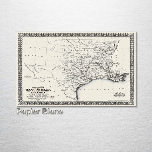 1871 Campaign Map of Texas Louisiana and Arkansas