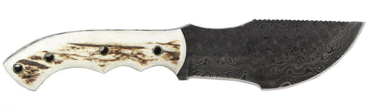 Custom Handcrafted Damascus Steel Tom Brown Tracker Knife - 10" Antler Horn Handle with Horizontal Leather Sheath | Survival, Tactical, Combat | KBS Knives