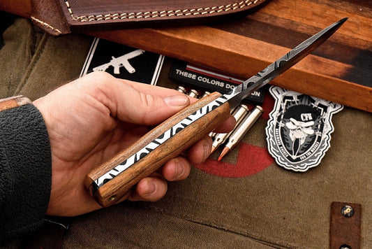 Custom Handmade Damascus Olive Wood Skinning Hunting Skinner EDC Knife