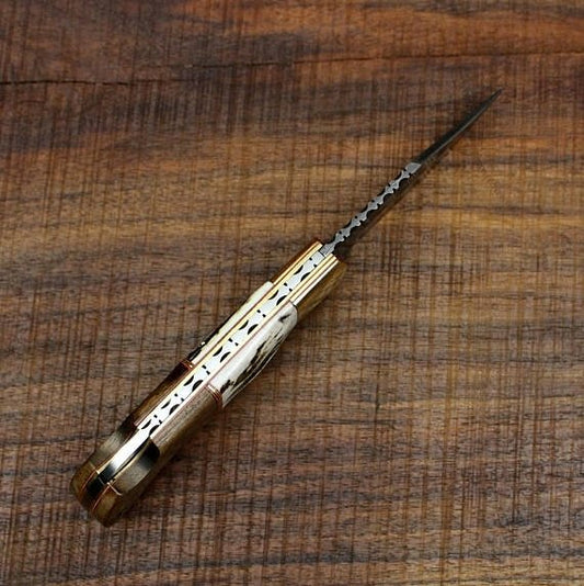 Custom Handmade Damascus Steel Folding Pocket Knife with Hand Engraved Brass Handle