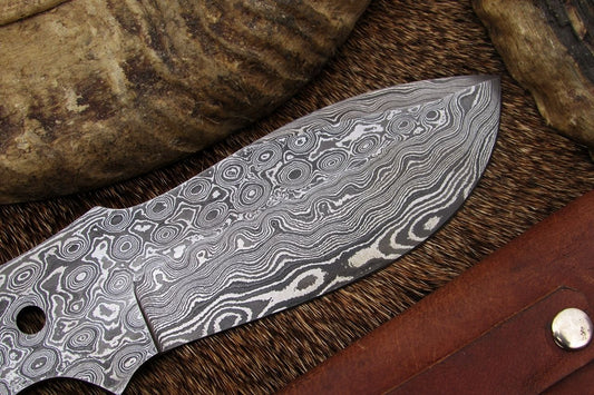 Dakota Damascus Skinner Knife with Hand tooled Sheath & Belt