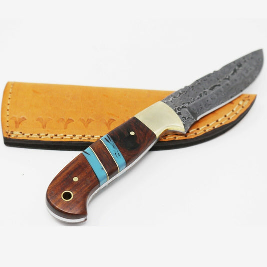 Handcrafted Damascus Hunting Knife with Olive Wood and Resin Handle by KBS Knives Store