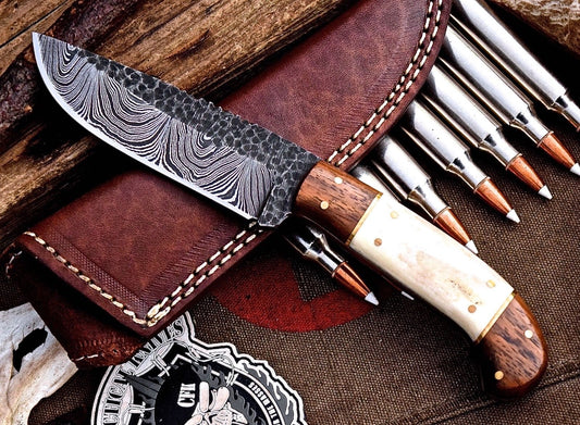Custom Handmade Damascus Steel Skinning Hunting Knife