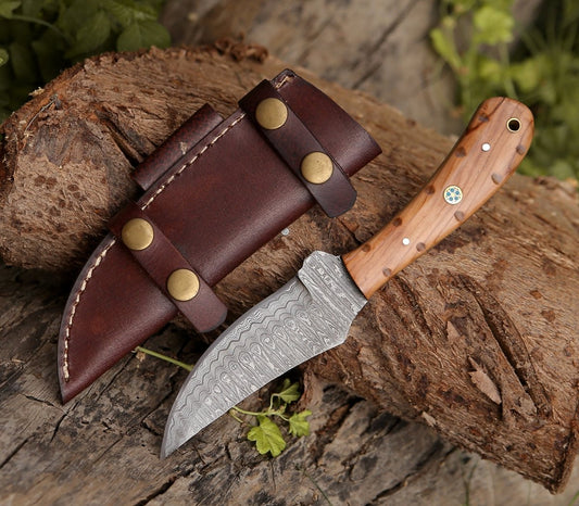 Frontier Custom Damascus Steel Knife with Charred Oak Wood Handle