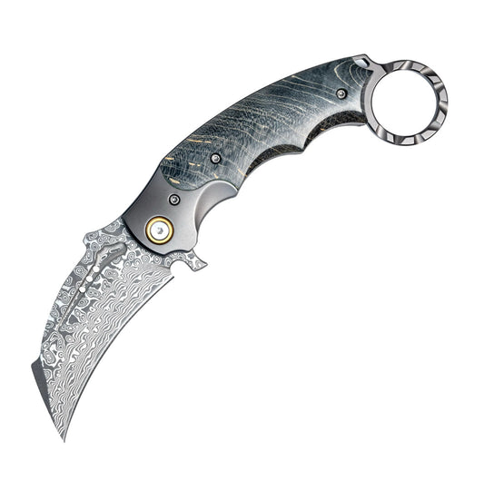 Falcon Japanese Damascus Pocket Knife with Exotic Stained Maple Burl Handle