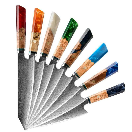 Epical Japanese Chef Knife Copper Damascus Steel Blade with Carbon Fiber Handle and Sheath