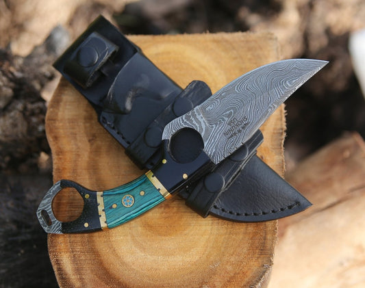 Spark Damascus EDC Knife with Micarta & Pakkawood Handle