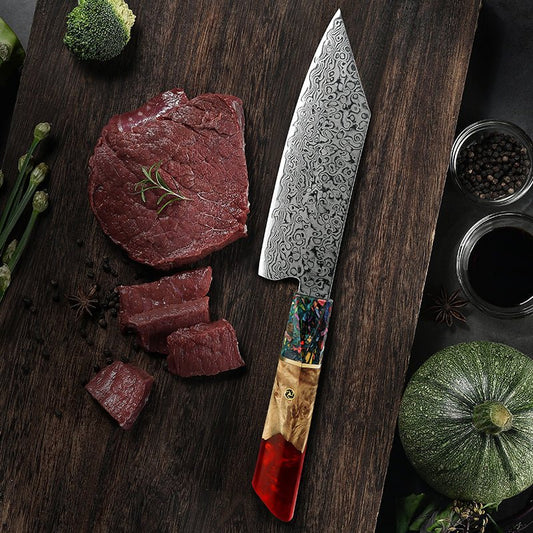 Aurora Japanese Chef Knife with Olive Burl Wood & Resin Composite Handle