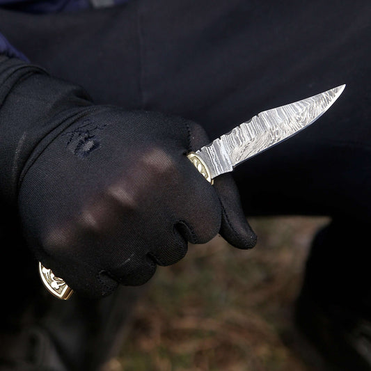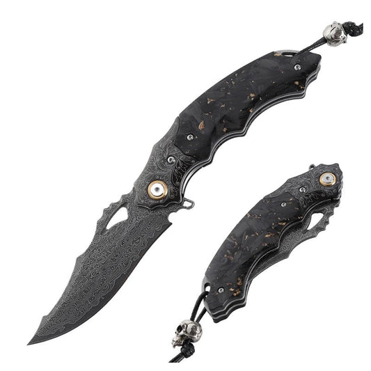 Black gold EDC Gentlemen's Pocket Knife with 14K Gold Foil Carbon Fiber Handle & Sheath Personalized