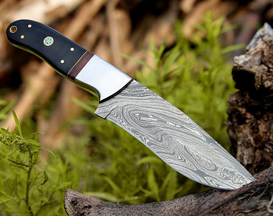 Starlight Damascus Hunting Knife with Exotic Rosewood & Ram Horn Handle