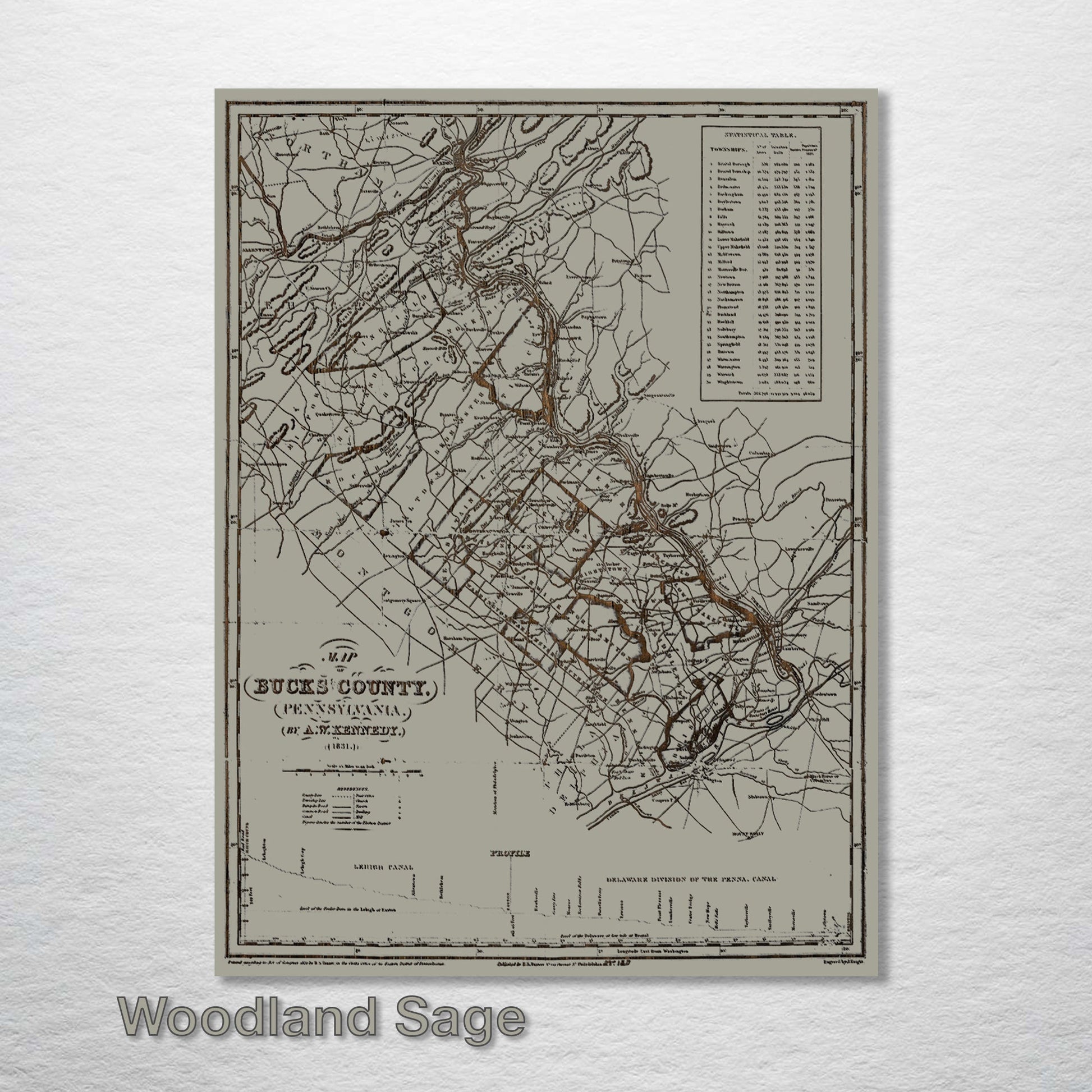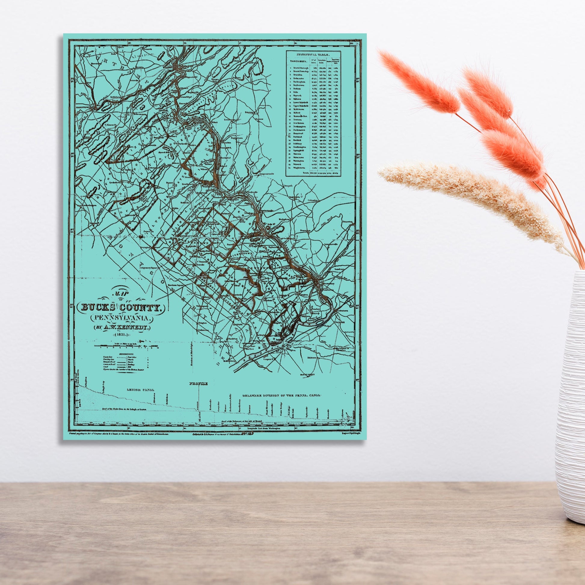 Collector's Delight: This remarkable wood-engraved wall art of the 1831 Bucks County, Pennsylvania map is a true masterpiece. Meticulously crafted from premium pine wood, it showcases the intricate details of the map, making it a distinguished piece in any collection. It's especially appealing to those with a fondness for historical maps, Pennsylvania history, or rustic, vintage aesthetics.