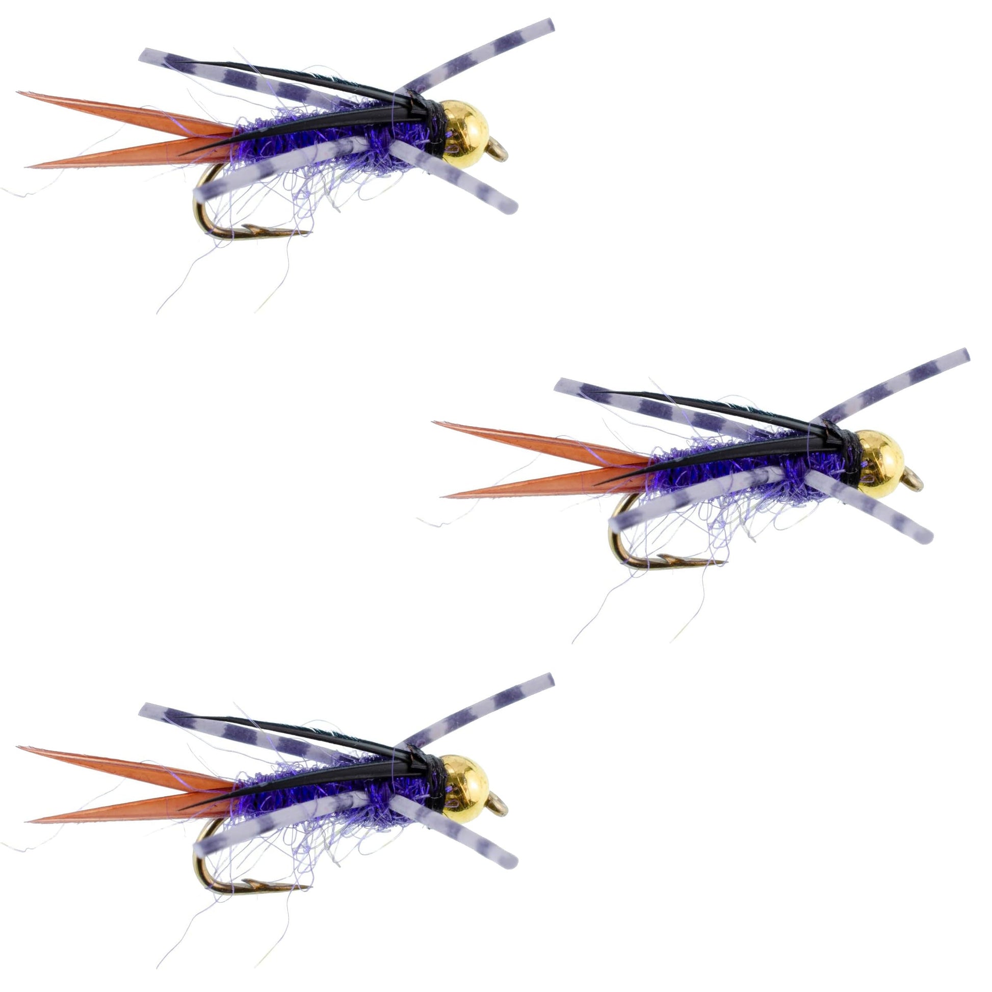 3 Pack Bead Head Purple Batman Rubber Legs Nymph Fly - Hook Size 14
