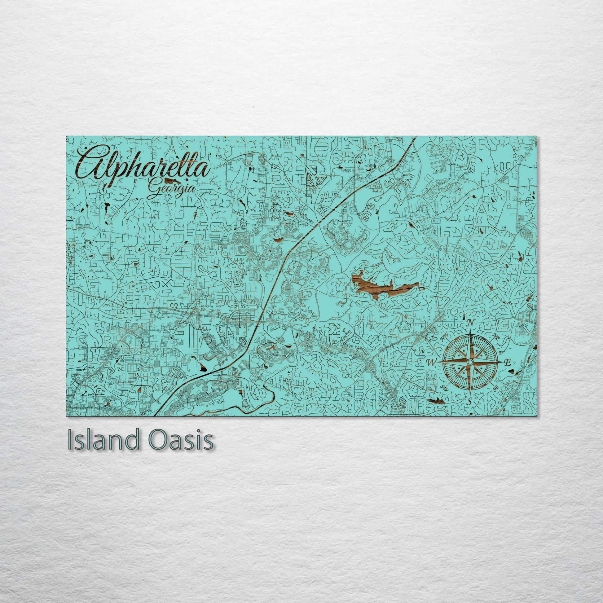 This is a street map of Alpharetta, GA designed by Fire & Pine artists.