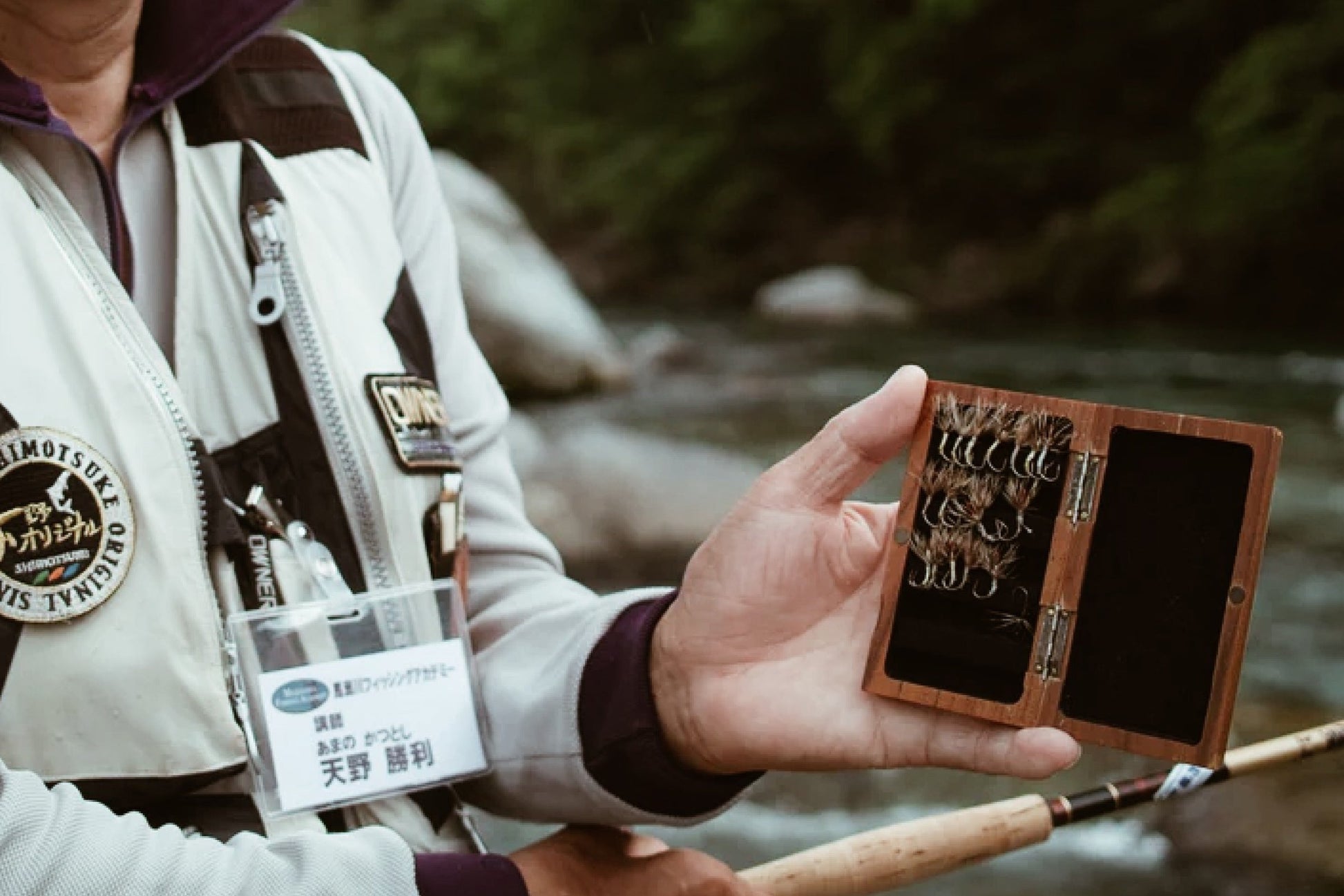 Mr. Amano's favorite way to fish it is to cast slightly upstream and do a 4-count up and down motion following the fly downstream. He fishes it under the surface, and when the fly is pulled up its hackle opens up, when relaxed the hackle closes.