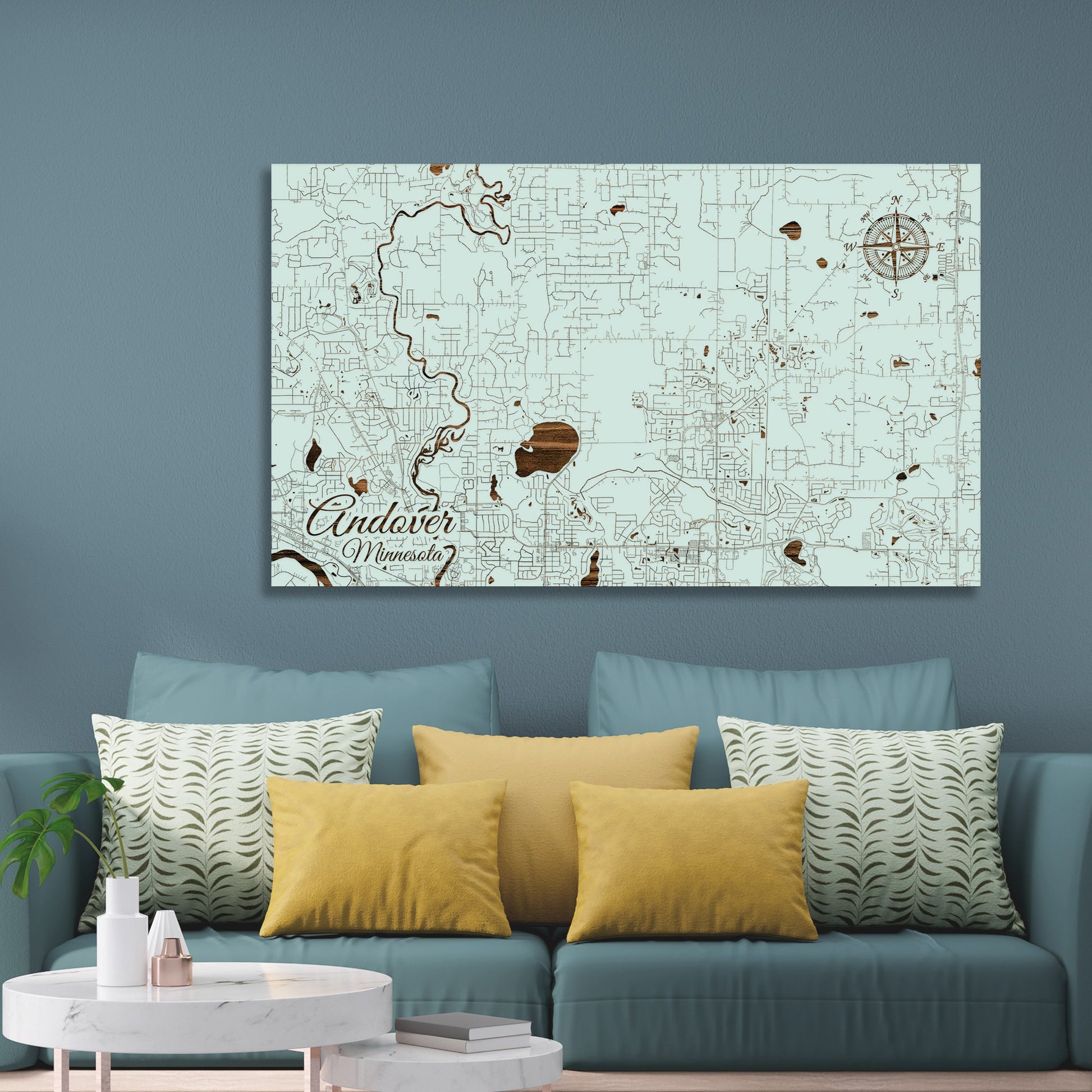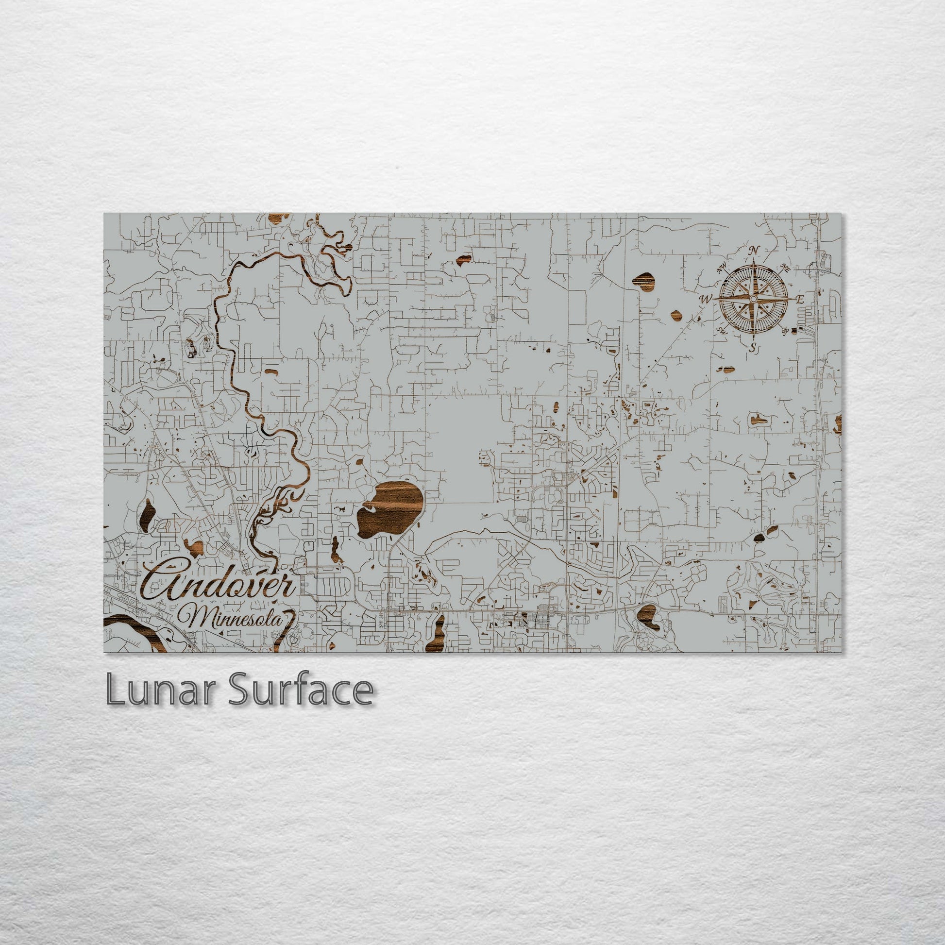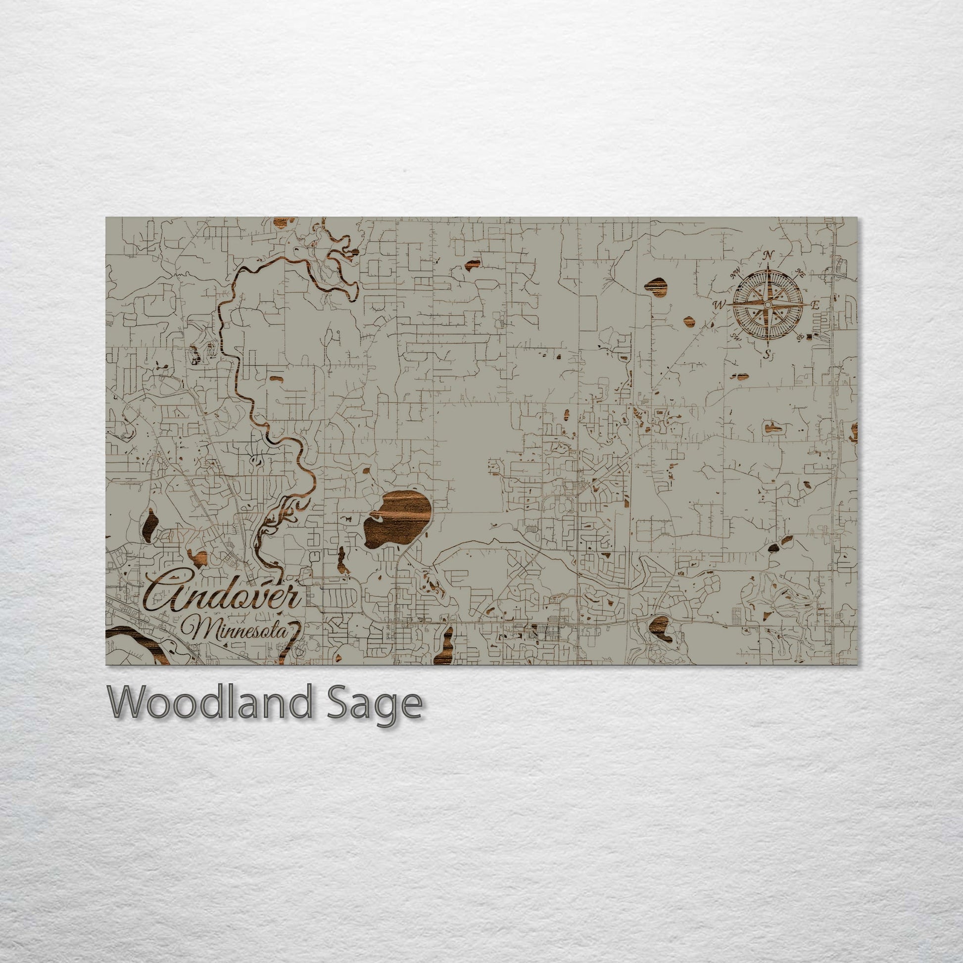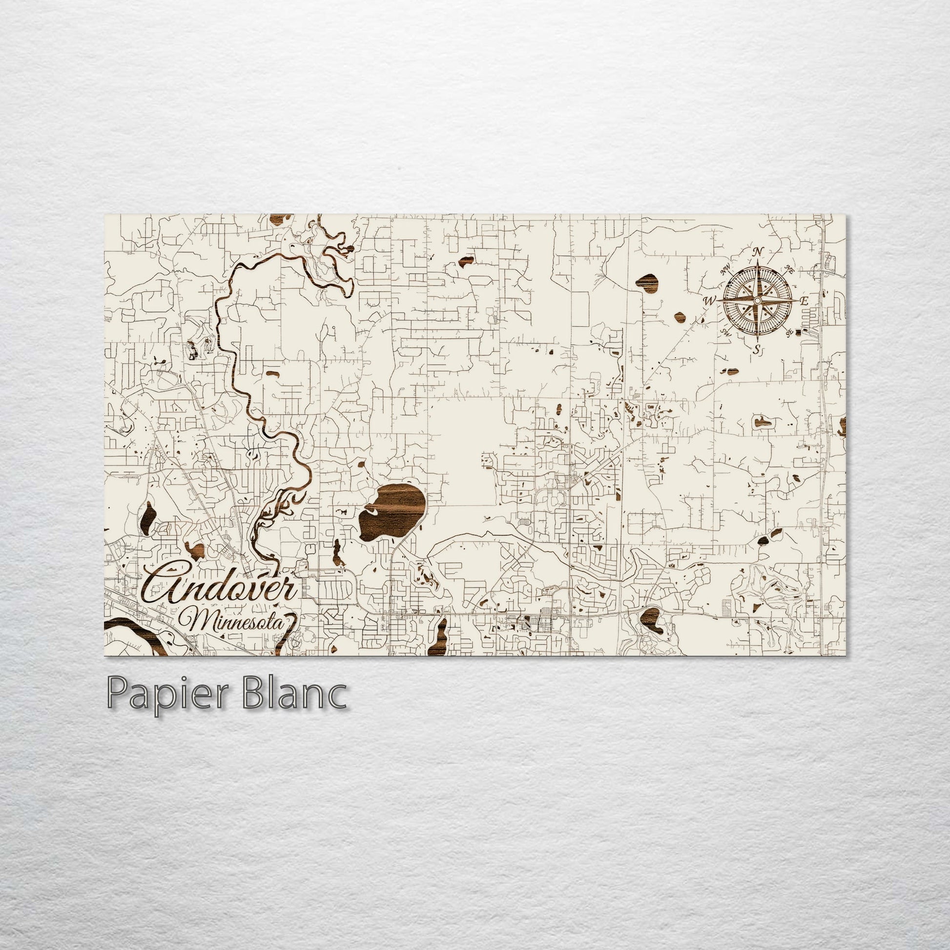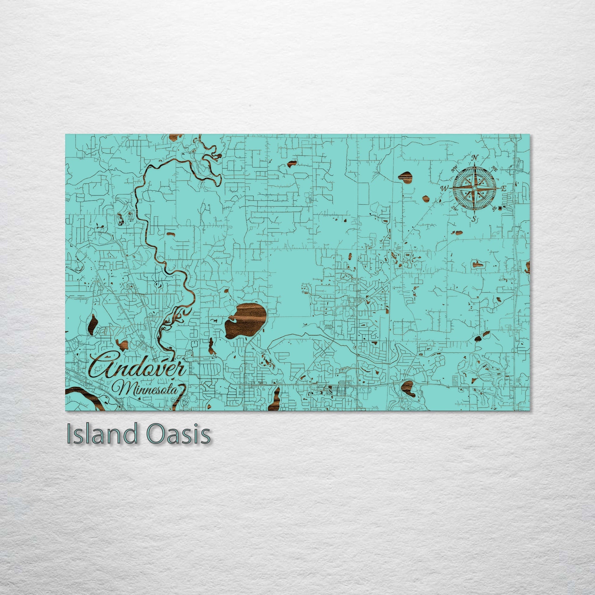 This is a street map of Andover, MN designed by Fire & Pine artists.