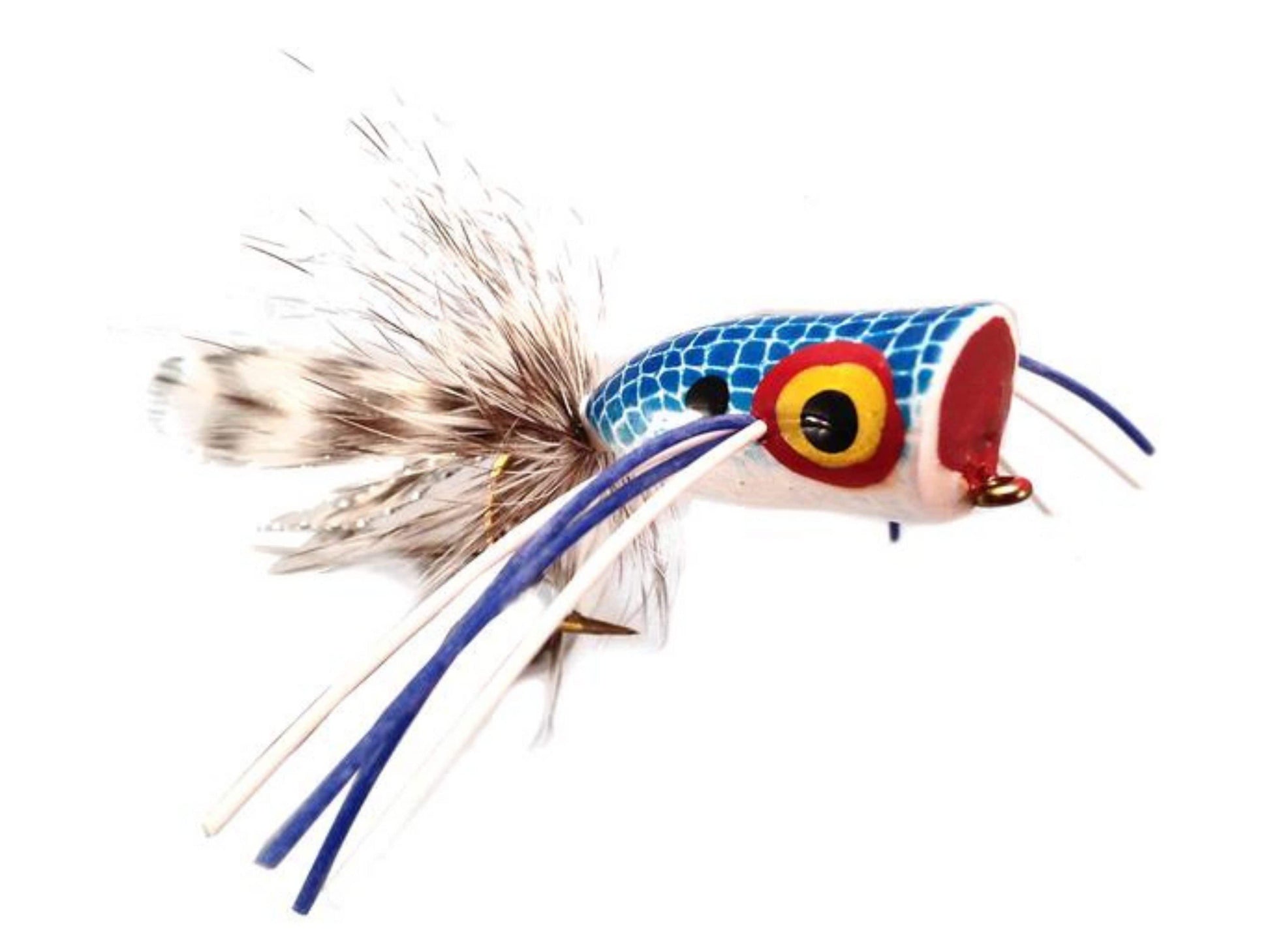 Bass Popper, Size 2 | Blue and White | Qty. 4 | Wild Water Fly Fishing