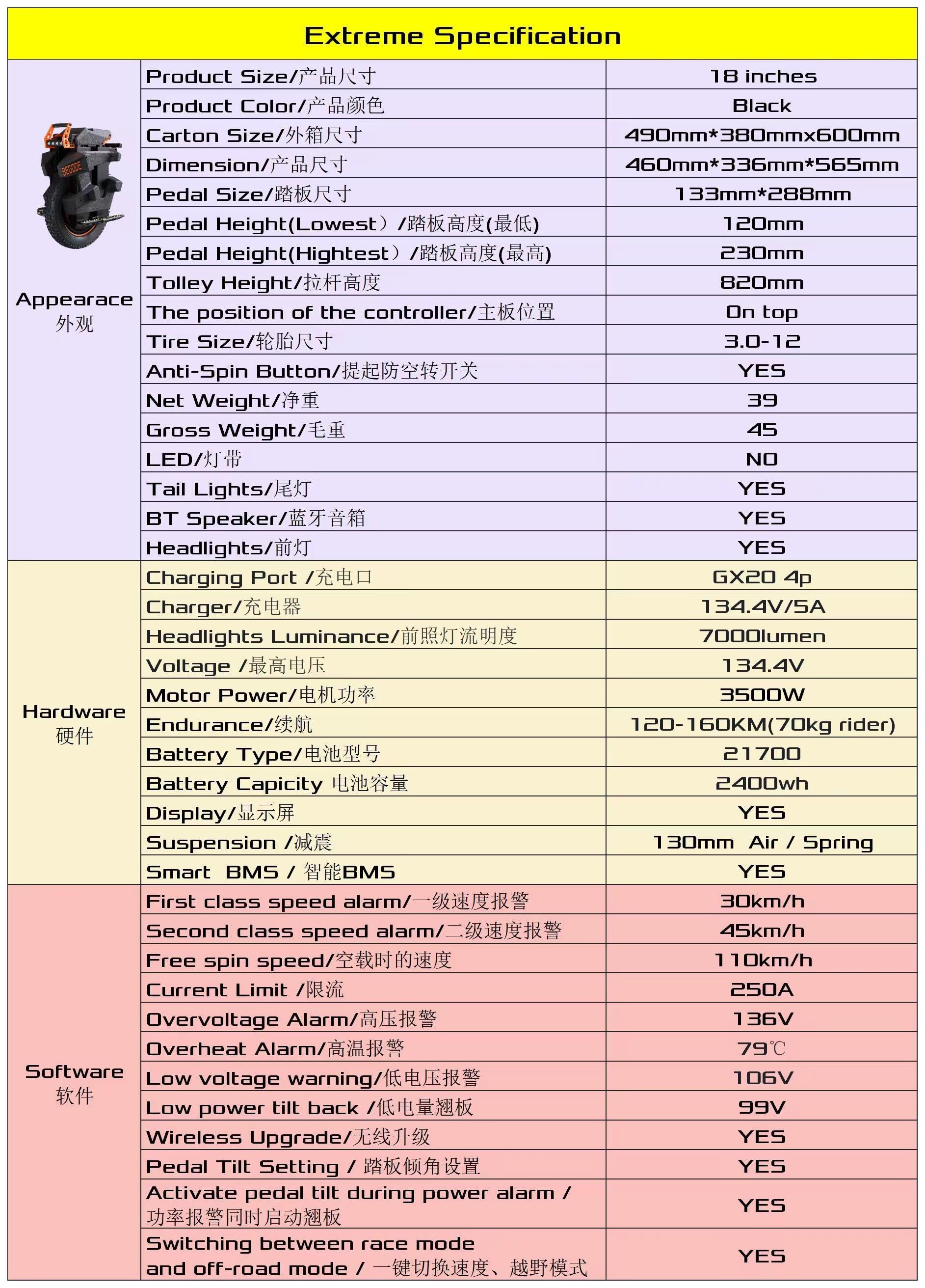 Continuing to push the boundaries, Begode has created the most powerful EUC in the world, now in a more compact form. The Extreme packs an incredible 134 volts and 2,400 watt-hours of capacity. Now shipping with 50S cells!