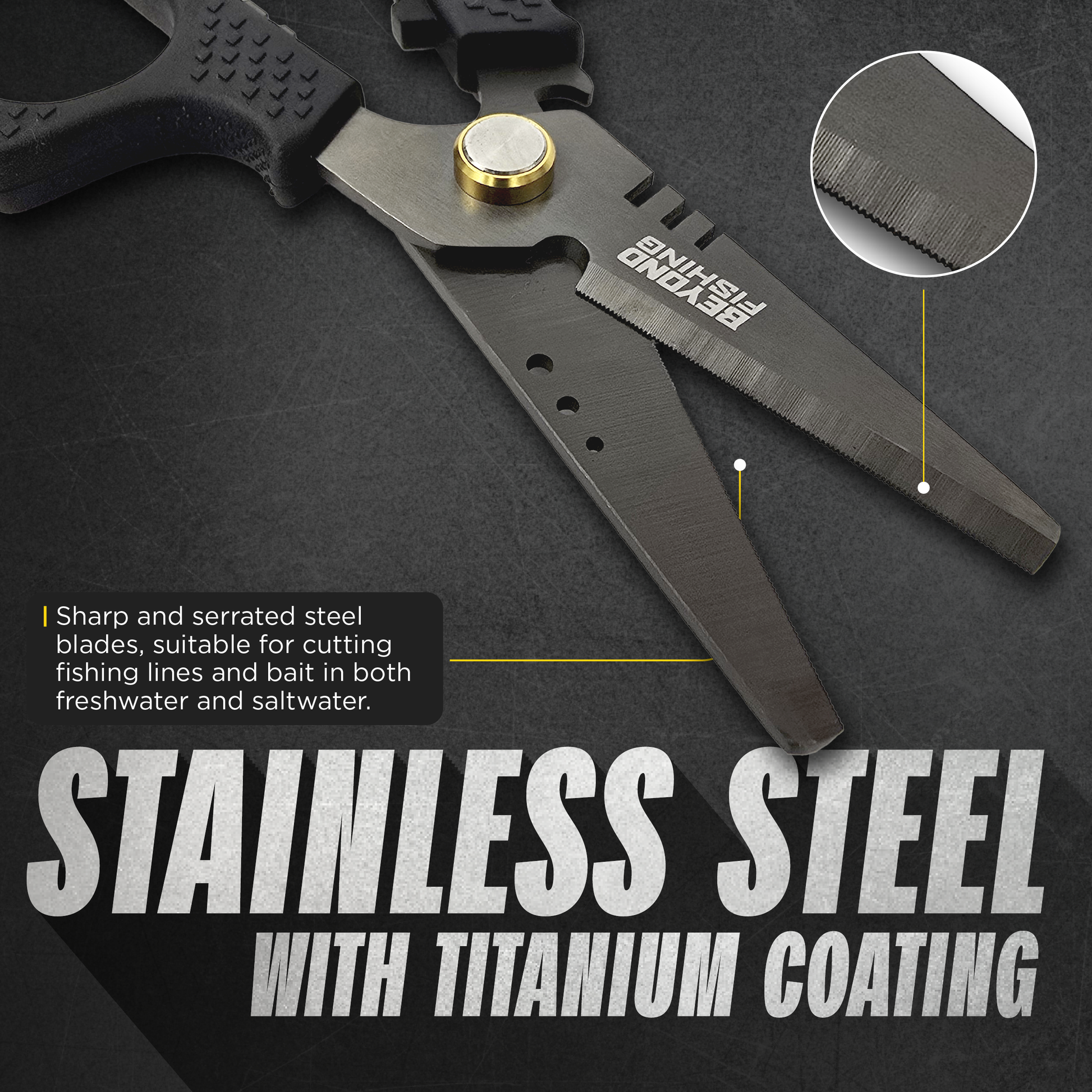 - CUTS LIKE BUTTER: Cuts monofilament, fluorocarbon, braided line, & steel wire like butter. It will also cut your baits, squid, shrimp, and fish with no problem.