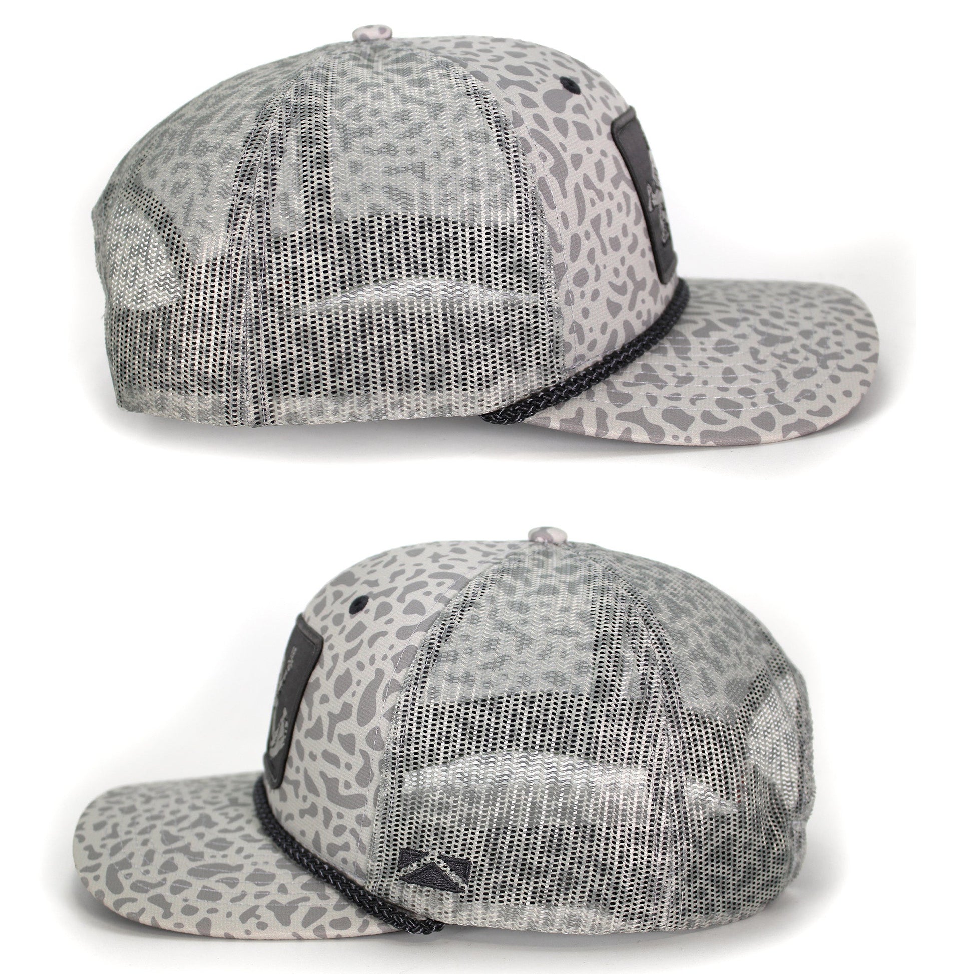 The Bigfoot meshback fishing cap features a big foot bass patch and unique fish print on our 6-Panel rope cap style. Coupled with our Comfort Snap stretch elastic snapback for the stretch of elastic and adjustability of a snapback. This bass fishing hat features our American Fit sizing that fits men's head sizes MD - XX. Combine our Comfort Snap with our American Fit and these caps are a better fit for big heads. If you are looking for the best fishing hats and most unique designs we have you covered.