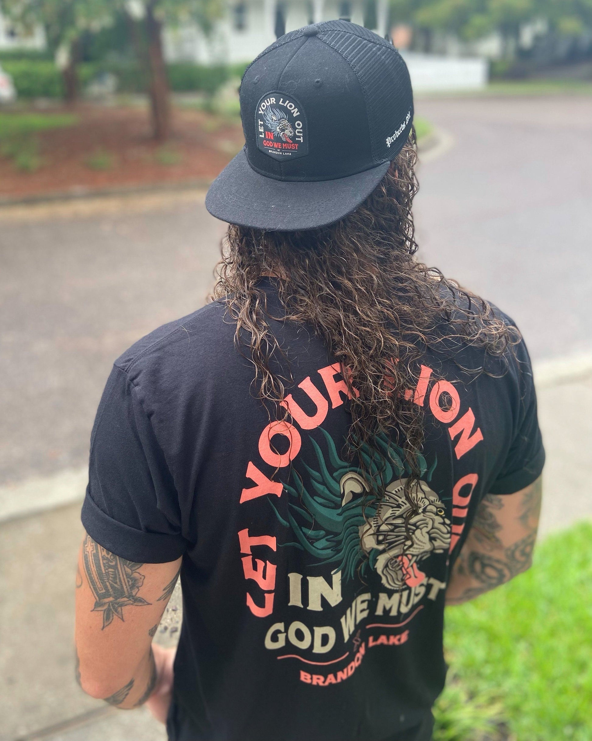 Official collaboration with Brandon Lake. This flat brim snapback hat features one of Brandon's favorite tattoos showcasing a fiery lion.