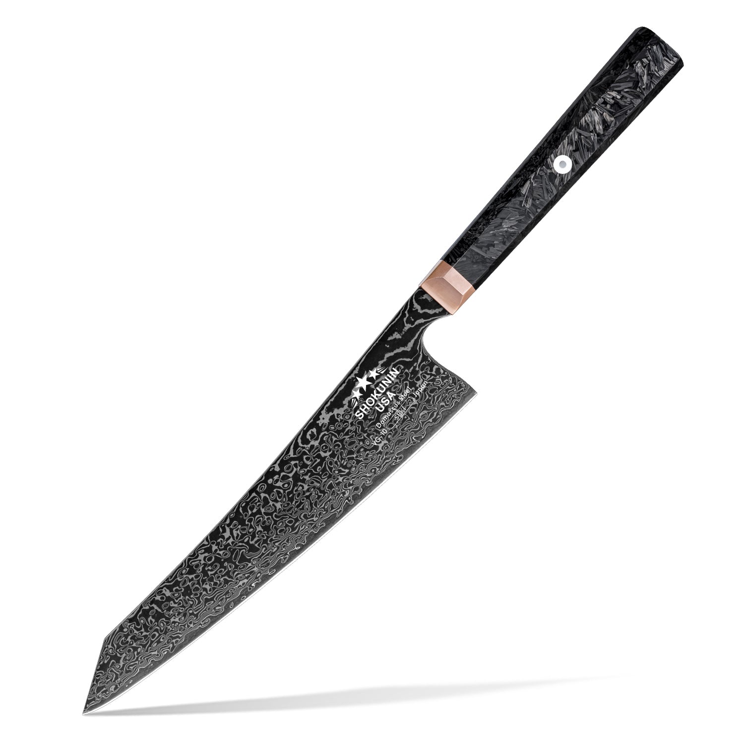 Cinder Japanese Damascus Chef Knife with Carbon Fiber Handle