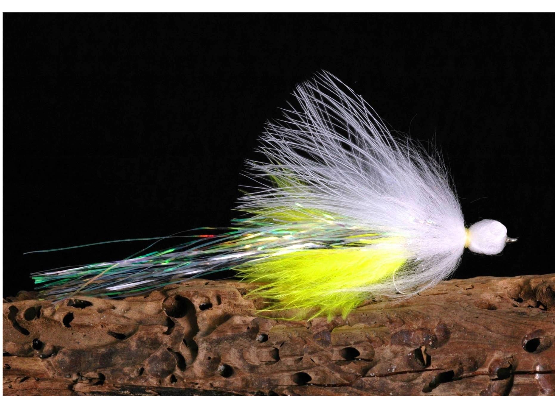 Bob designed this fly to hang suspended just under the surface. The fly has a slow tantalizing drop and when it is stripped short and quick it rises upward then allowed to drop again. It is effective on the both bass species, redfish, snook and others. This is Bob's favorite snook fly. It is an effective fly in both saltwater and freshwater!