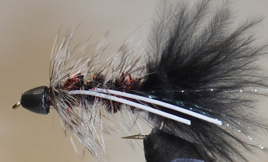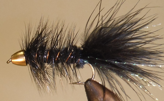 Woolly Buggers, depending on the materials and colors used, can be, dead drift, stripped or trolling. Often used to imitate large nymphs, baitfish, leech, drowning terrestrial insects, clamworms, crayfish, shrimp, or crabs.