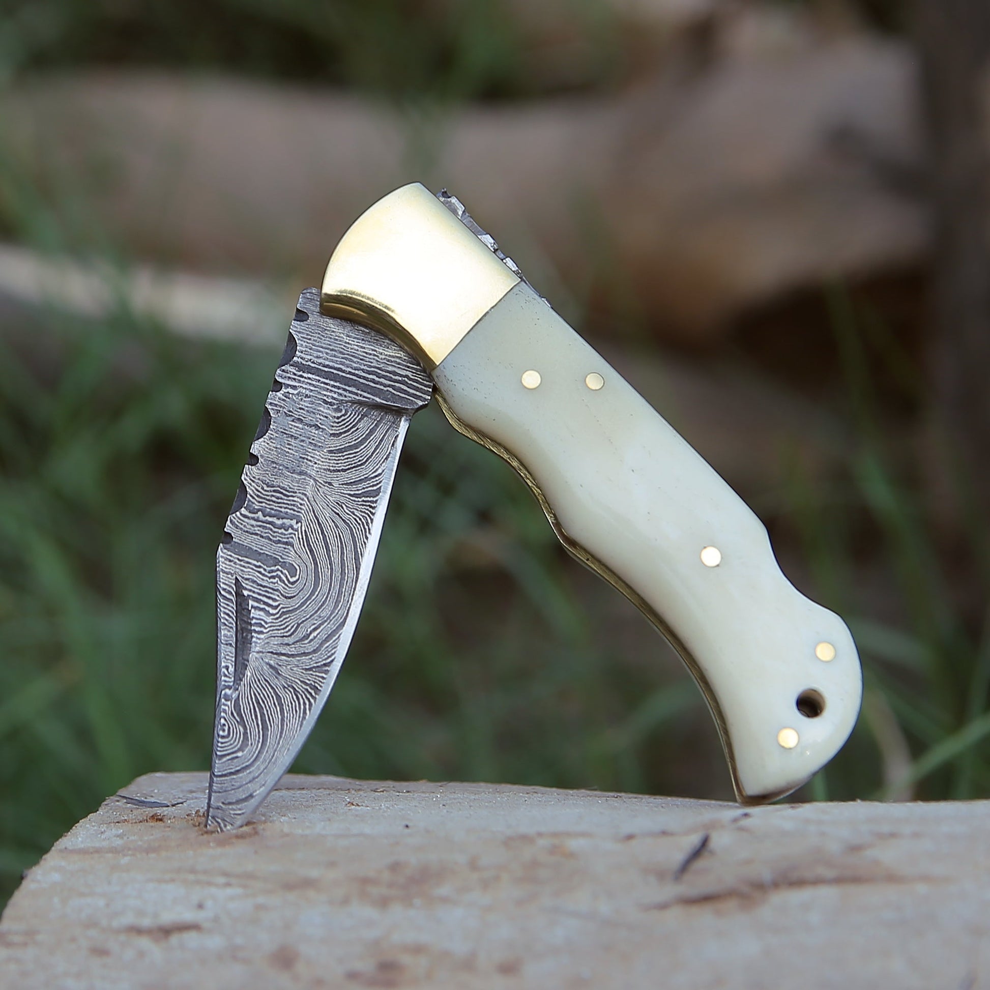 Cosmo Handmade Damascus Pocket Knife with Bone Handle