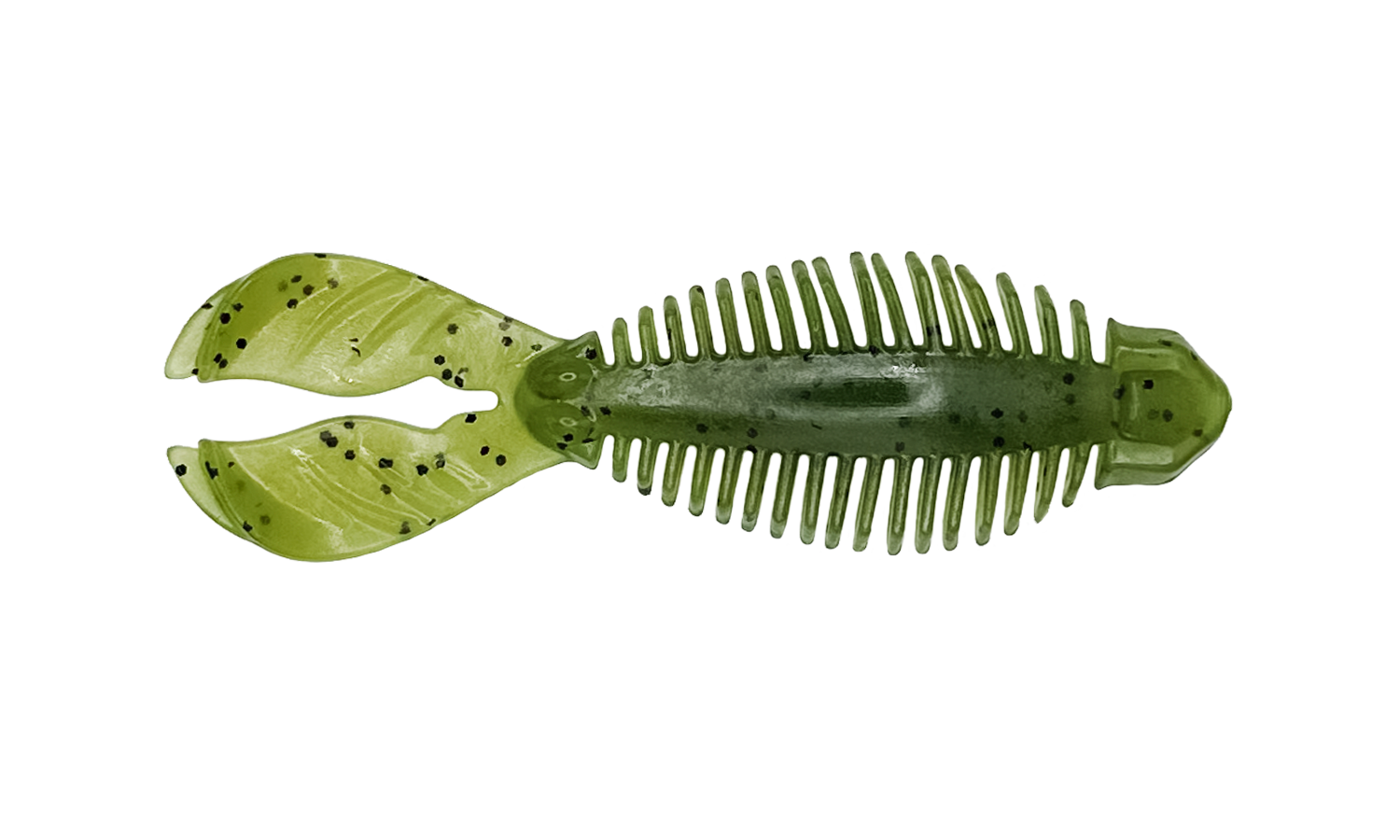 The Craw Gill's hybrid design is a perfect combination of profile and action. Not only does it mimic a crayfish, but it’s wider profile perfectly imitates a small bluegill. The Craw Gill's appendages produce a dynamic swimming action while its deeply ribbed body creates vibration and maximum water displacement. Designed with a custom hook keeper on the head for durability the Craw Gill is perfect for pitching and flipping into cover as well as being an amazing jig trailer.