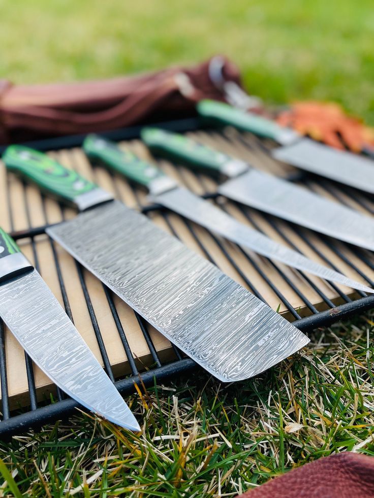 Master Every Cut: Custom Handmade Damascus Kitchen Knife Set!