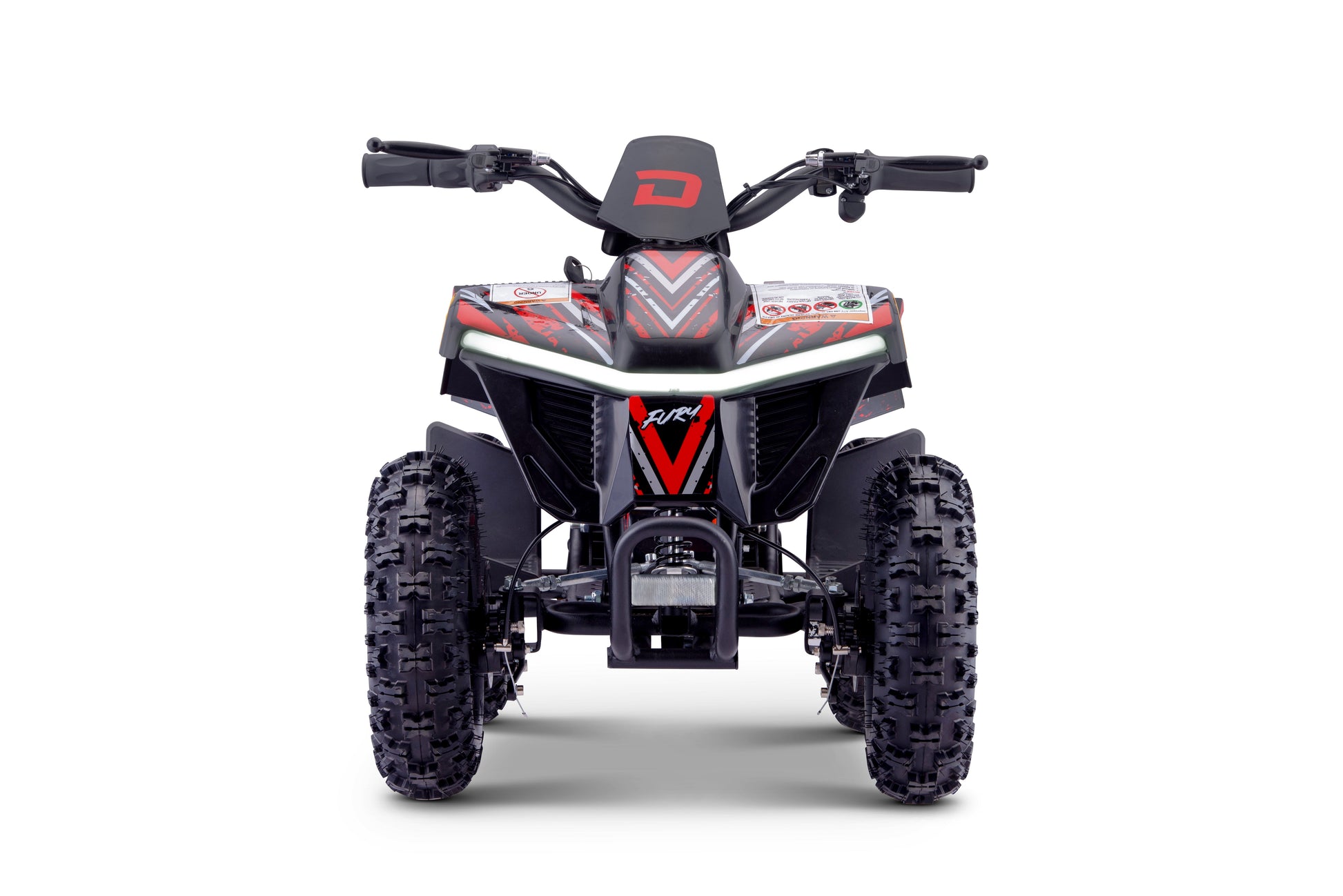 Introducing Fury, the electric ATV ride-on vehicle from the team at Droyd! Designed for kids ages 6+, Fury offers a 36v, 500watt brushless DC motor powered by a lithium-ion battery. Fury’s chassis features full-working suspension at the front and rear ends, perfectly matched to beefy all-terrain tires. Under parental-guidance, kids can reach speeds of up to 10mph (low speed setting) or 15mph (high speed setting). Designed for kids of age 6 years and above.