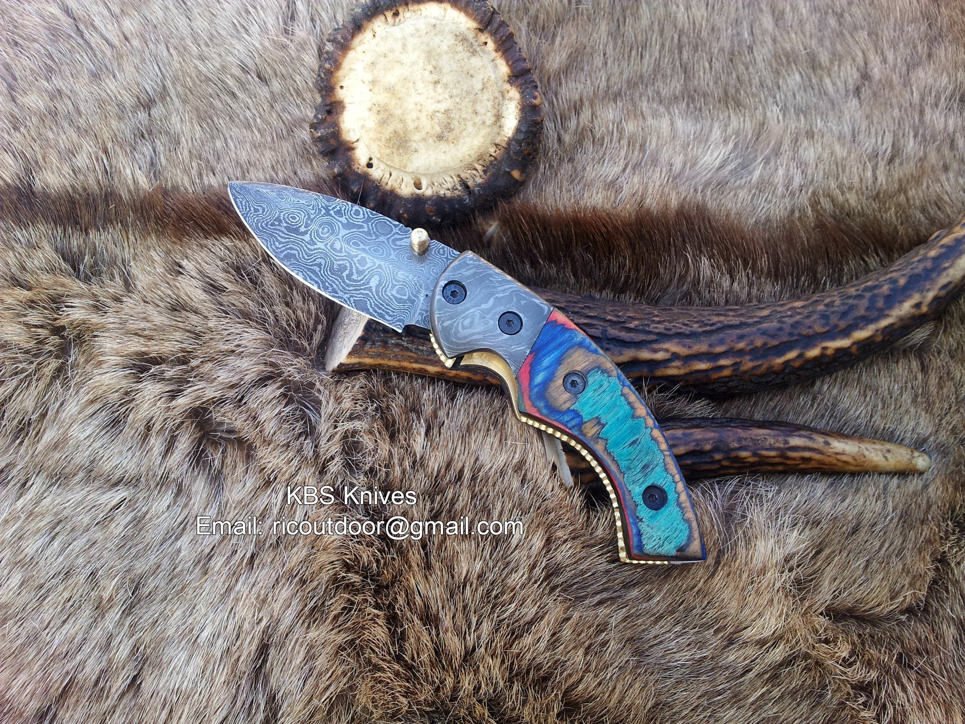 Everyday Carry Damascus Steel Folding Pocket Knife with Multi-Color Wood Handle – The SpectrumEdge