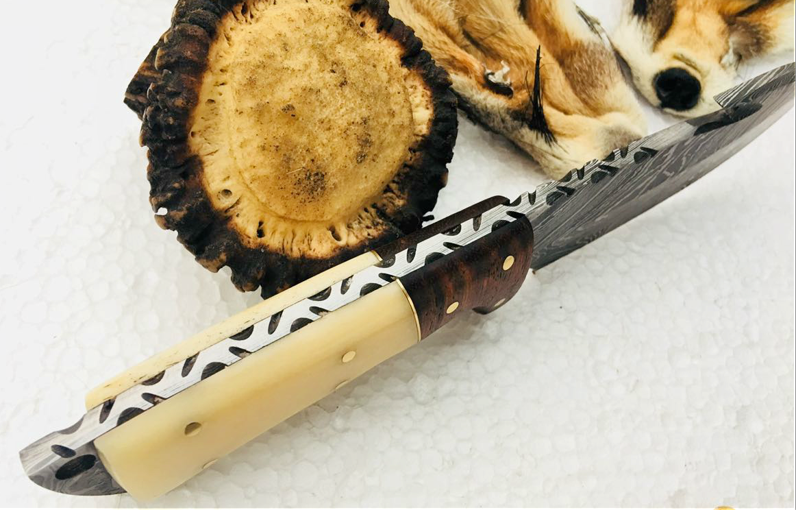 Full Tang Custom Handmade Damascus Steel Gut Hook Skinning EDC Knife