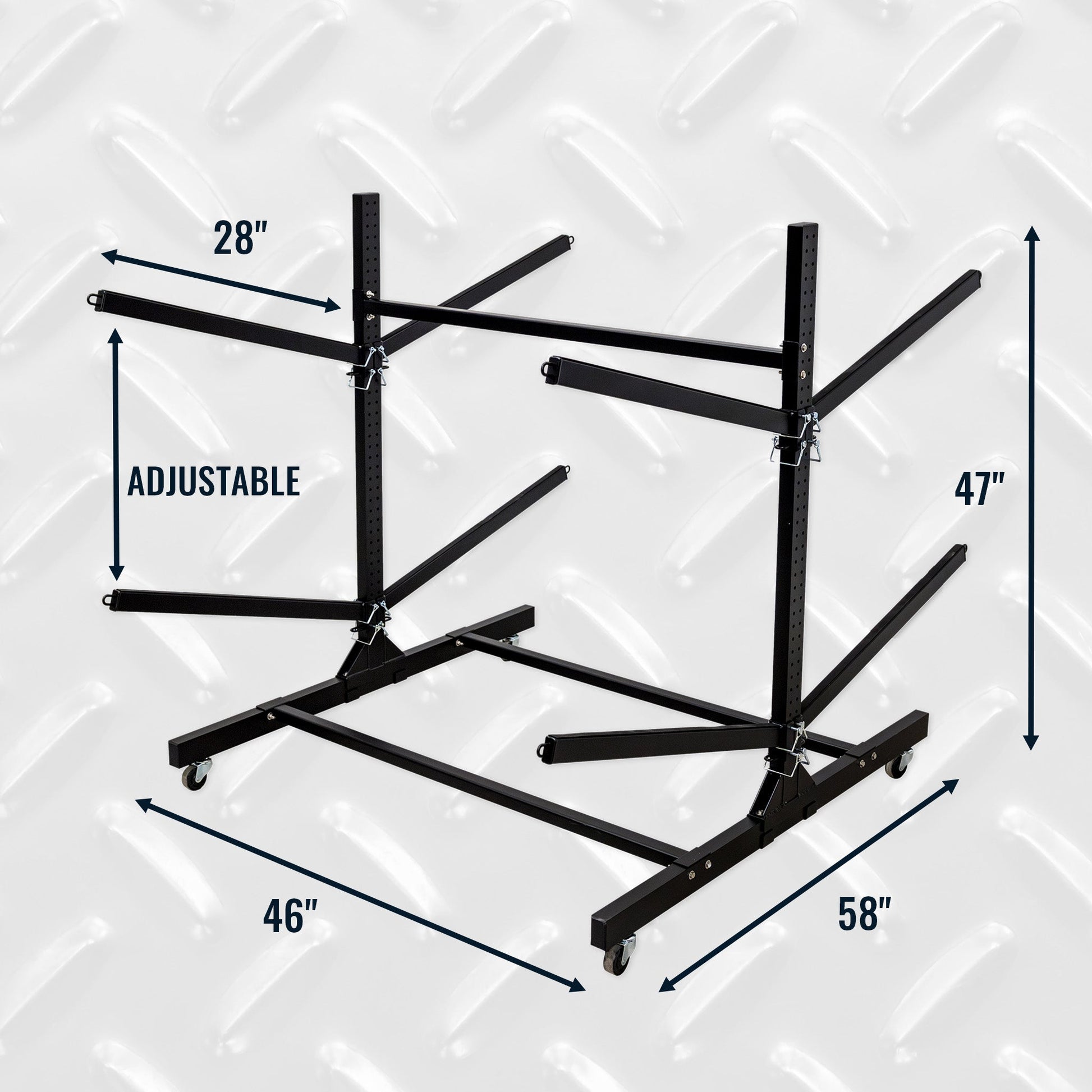 Keep watercraft storage flexible with this 4 kayak rolling rack with lockable wheels. The double-sided design makes kayak access effortless, making it easy to keep your garage, dock, or boathouse organized.