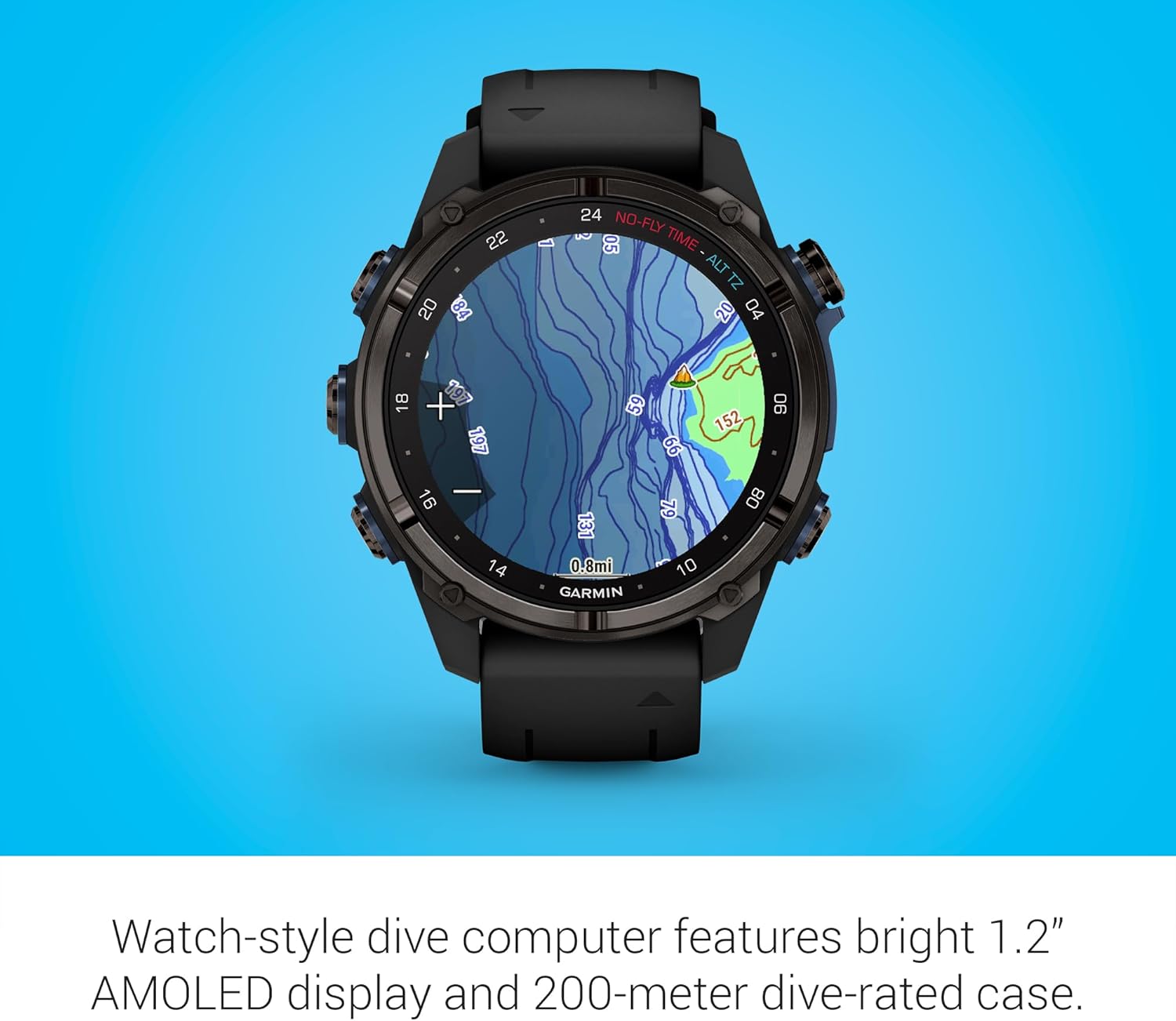 With a 1.2” AMOLED display and a scratch-resistant sapphire lens, the Descent Mk3i is built to withstand the harshest underwater conditions. Rated for depths of up to 200 meters, this dive computer comes with a metal leakproof inductive button and provides excellent performance in challenging environments. It also features enhanced SubWave sonar technology that helps to connect with other divers in your group.