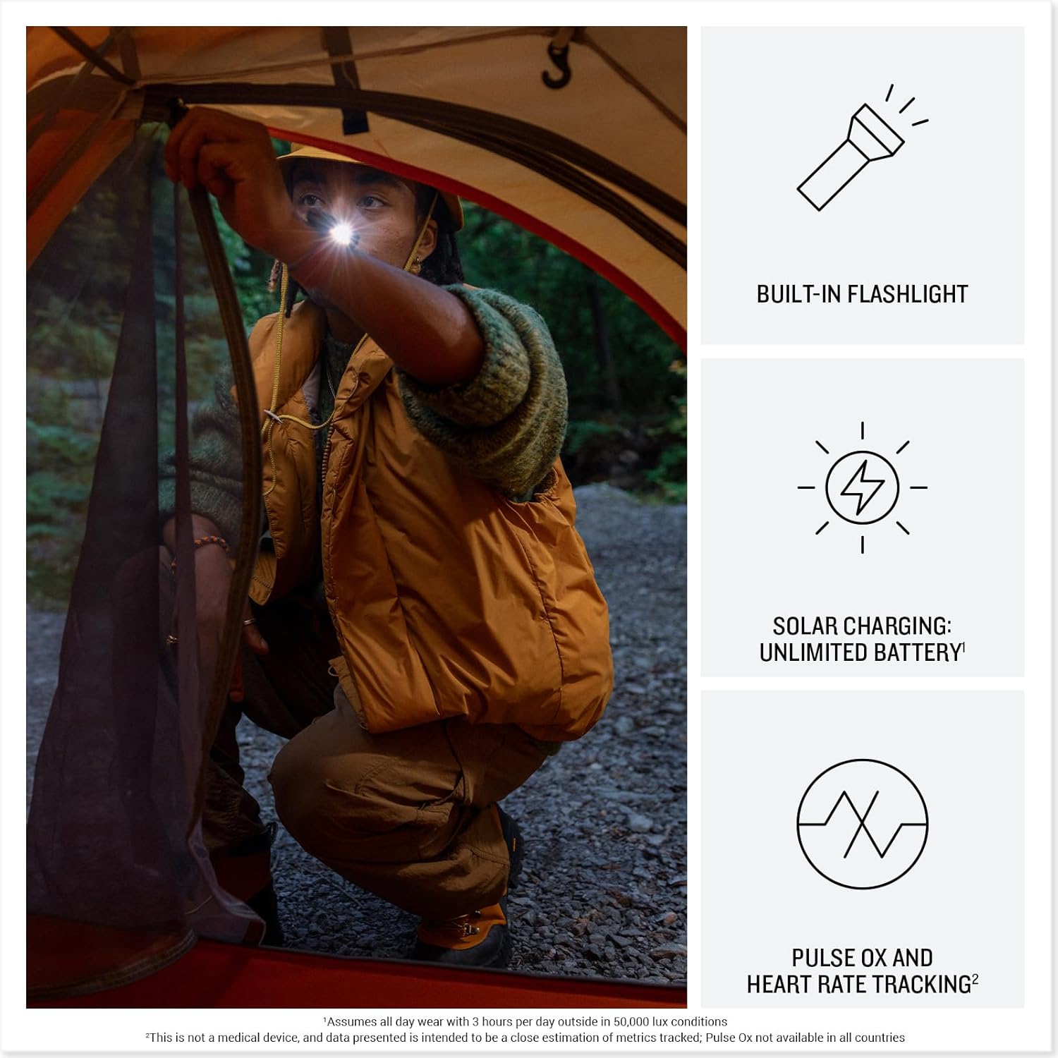 With up to 18 days of battery life in smartwatch mode, the Instinct® 3 ensures you're always powered up. Solar charging adds even more longevity, while GPS mode provides up to 32 hours, and Max Battery GPS mode offers up to an incredible 68 hours, making it perfect for extended outdoor trips.