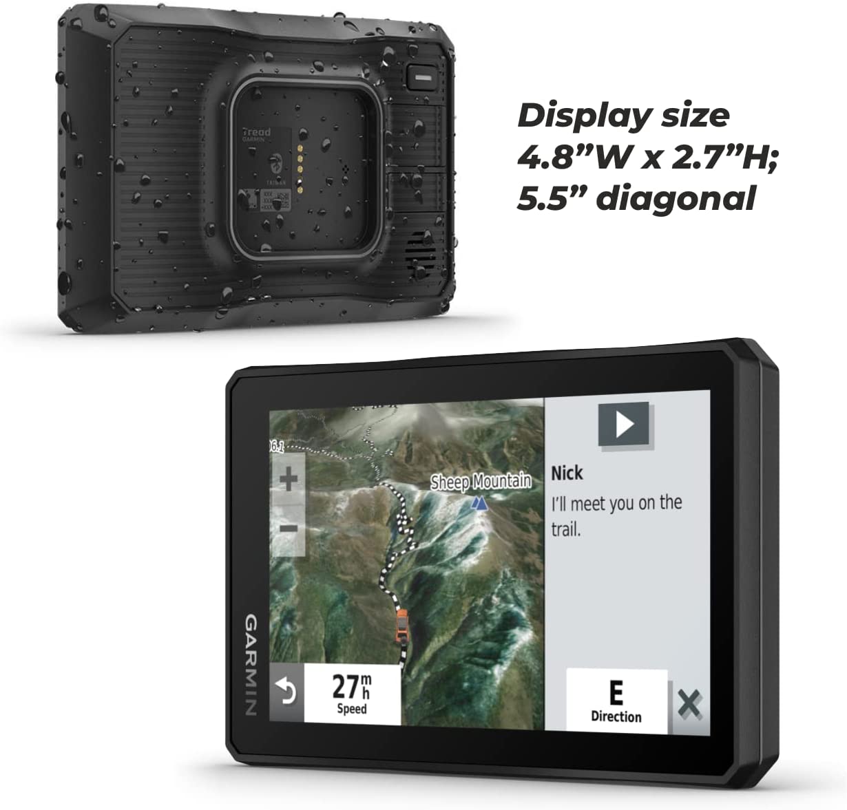 For improved off-road excursions, this tough, 5.5" powersport navigator includes topography that has already been loaded. Tread is designed to handle rough terrain, sweltering heat, and inclement weather and was made exclusively for enthusiasts of side-by-side, ATVs, and snowmobiles. The US Forest Service roads and trails with Motor Vehicle Use Maps, topographic maps of North and Central America, US public and private land boundaries, and downloadable, non-subscription BirdsEye satellite imagery are all included in this Garmin GPS navigator. To keep in touch all around the world, pair with an inReach® satellite communicator that is compatible (not supplied). Tread may also be used to navigate and track your dogs from your car using specific Garmin GPS dog trackers (not supplied).