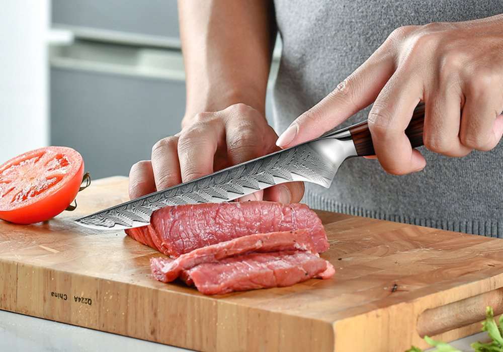 VG10 Damascus steel, renowned for its robustness, is a premium choice in knife making. It serves as the core in Damascus blades, typically layered with other stainless steels for enhanced aesthetics and performance. This steel is specially treated, oil quenched at 2100°F, and rapidly cooled twice to achieve a hardness of 58 or higher on the Rockwell scale. This process not only improves strength and edge retention but also creates the distinctive patterns that make Damascus knives highly prized by chefs and collectors alike.