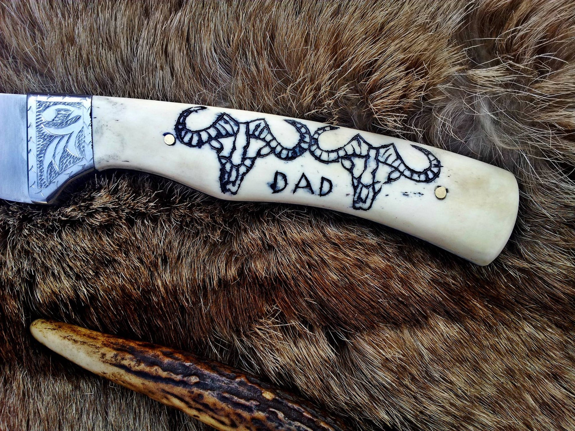Experience precision and style with this handmade D2 Steel Fish Cleaning Knife from KBS Knives Store. Designed for both professionals and fishing enthusiasts, it features a 6-inch sharp D2 steel blade for effortless filleting and boning of fish and meat. The engraved bone handle with a steel bolster adds a rustic, elegant touch while providing a firm grip.
