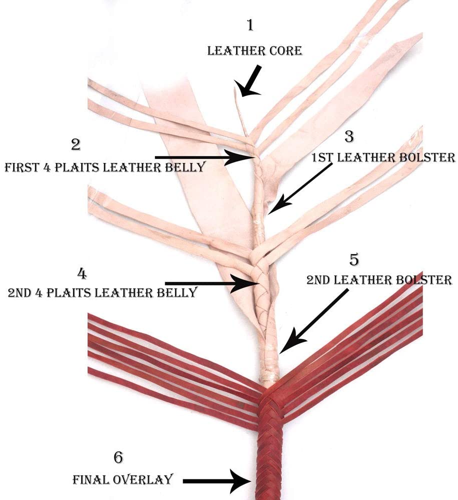 Handmade Red, Black & Orange Leather Bullwhip (4ft to 16ft)