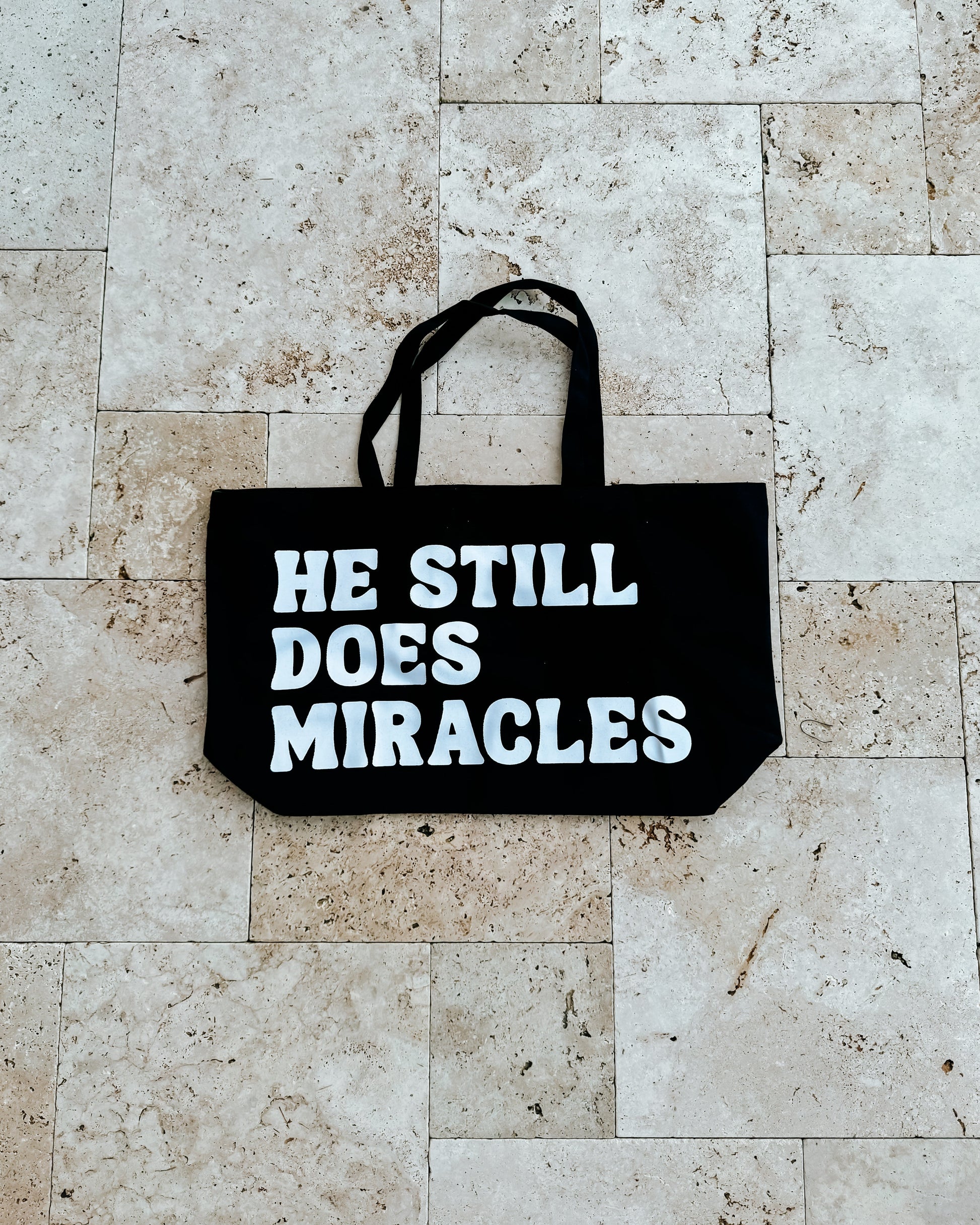 Our heavy-duty IGWM Tote Bag is designed for those who live boldly in faith. With "He Still Does Miracles" beautifully printed on the front, this durable tote is perfect for any adventure. It also features a convenient zippered inner pocket for your essentials.