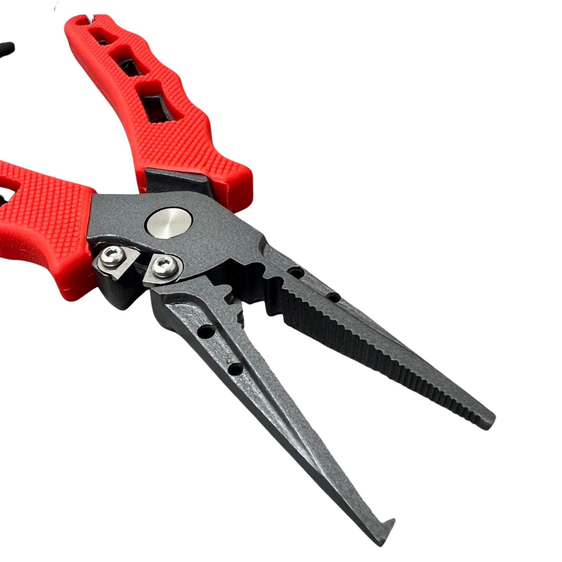 - Multi-Function Jaws – Grab and remove any fish hook with the serrated jaws or take advantage of the crimping slots to secure a split shot weight or build a steel leader. To cinch down a knot quickly and safely, insert your hook into one of the holes in the jaws and pull on your hook to create a tight knot. Available in both a straight nose and a Split ring nose design.
