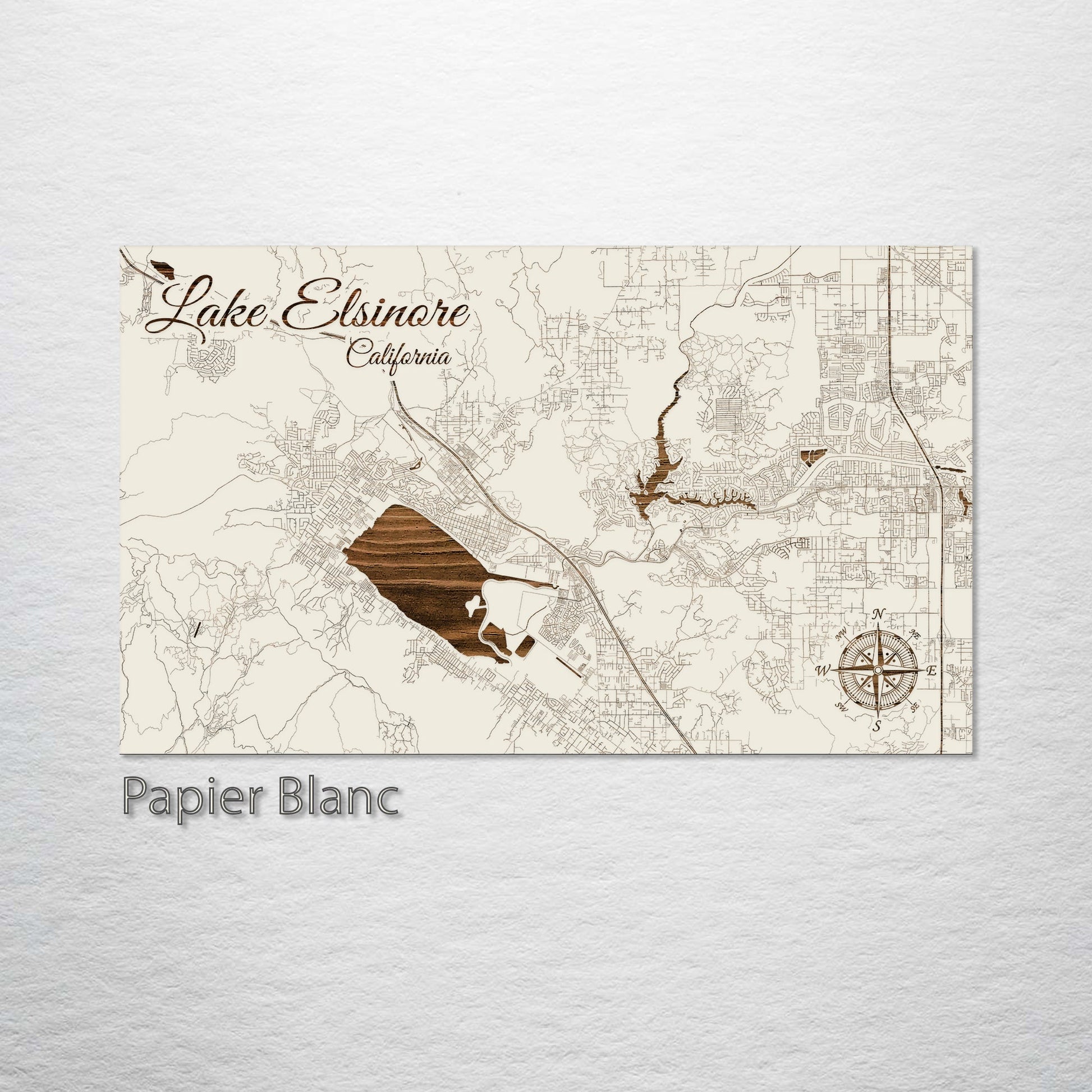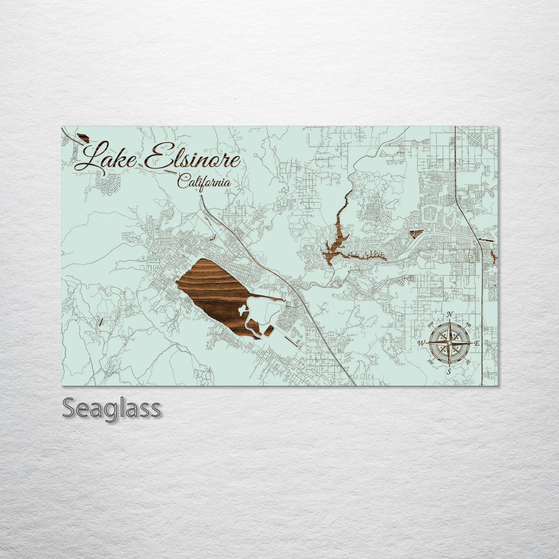 This is a street map of Lake Elsinore, CA designed by Fire & Pine artists.