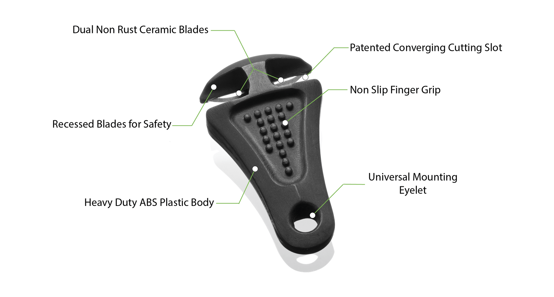 The Line Cutterz Zipper Pull is finally here! The recessed blade is mounted in a redesigned cutting slot for even closer cuts. The heavy-duty ABS plastic body with textured non-slip grip provides long-lasting dependable use. It can cut braided line, monofilament, and fluorocarbon - right from your zipper.