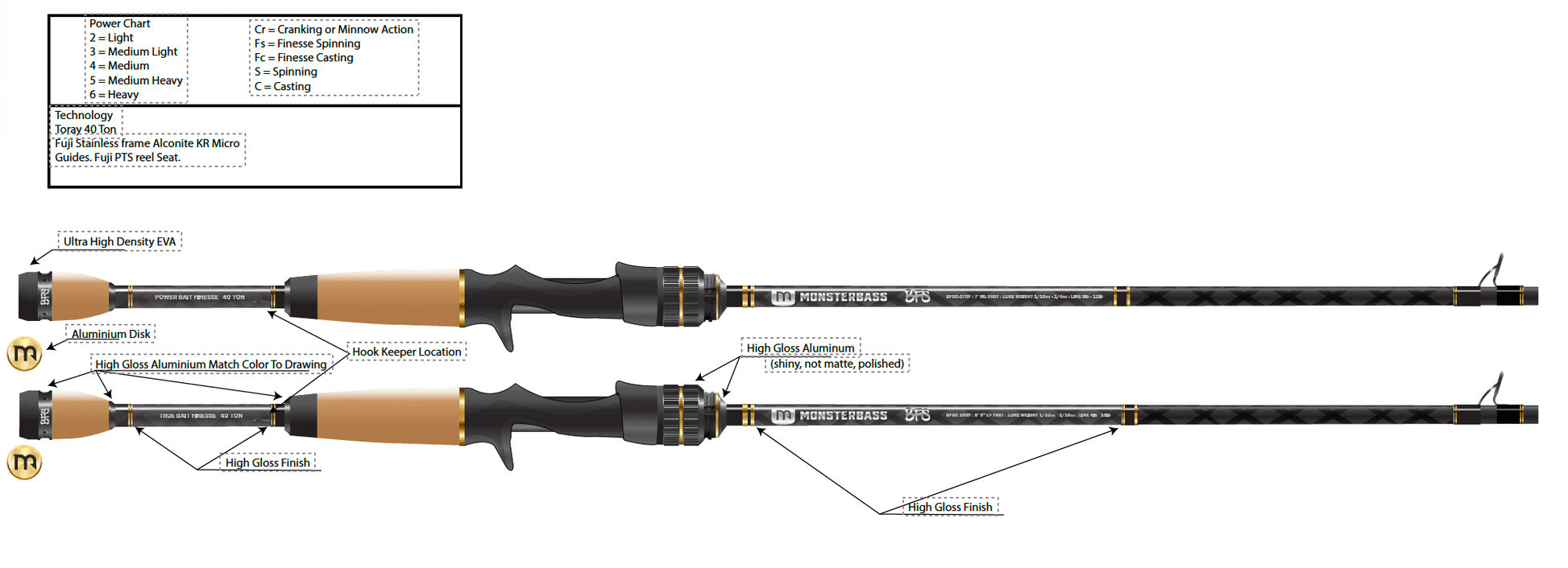 At its core is a 40 Ton Toray Japan Carbon Fiber blank, tuned for razor-sharp sensitivity and lightning-fast response. Every vibration, every subtle bite—translated directly to your hand. Outfitted with Fuji KR-Series stainless frame micro guides with braid-ready alconite inserts, and anchored by the new-for-2025 Fuji PMTS Bait Finesse reel seat with a custom MONSTERBASS aluminum locking nut, this series blends JDM styling with American grit.